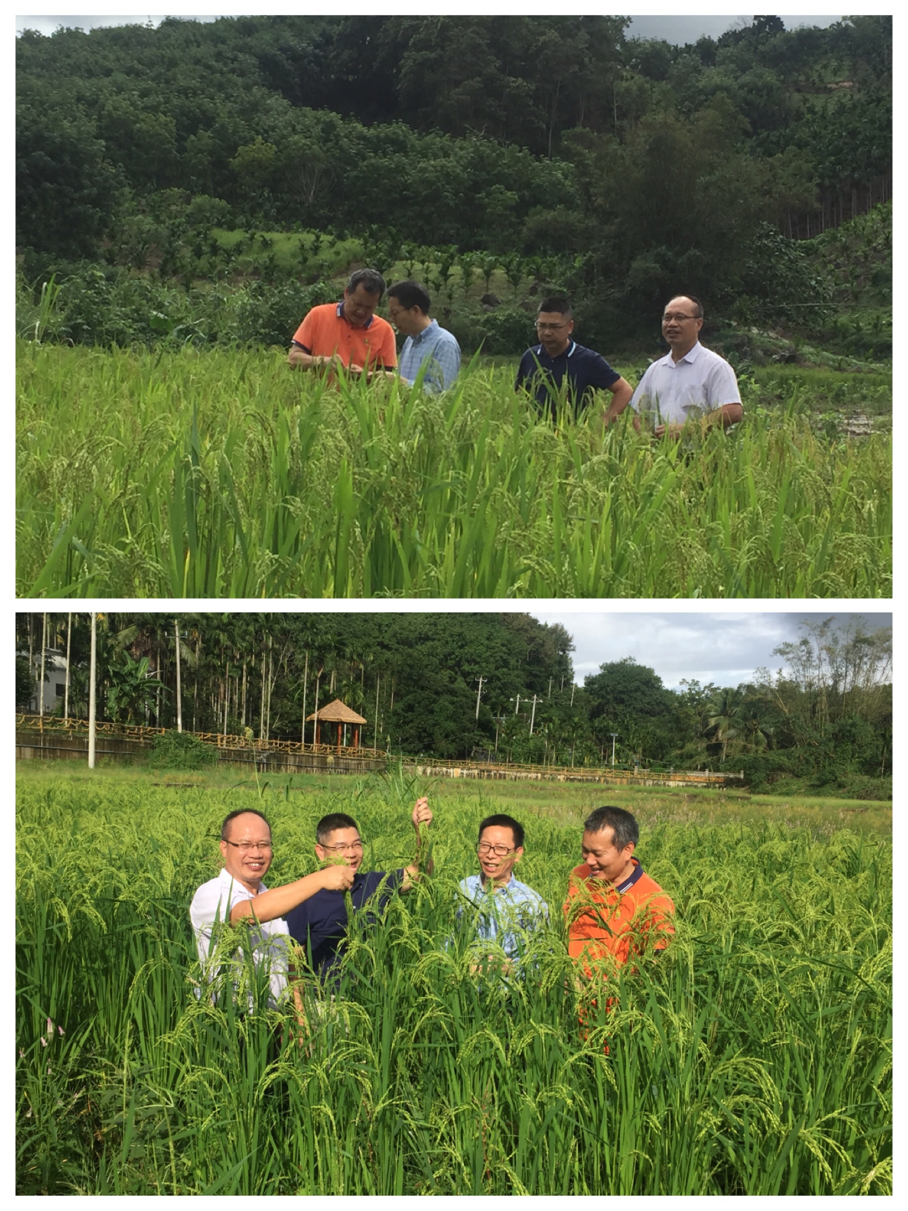 调研组在琼中县农业农村局有关负责同志的陪同下,针对不同品种类型的山兰稻种植基地进行实地走访调研,查看不同品种在不同种植条件下的生长状况、抗倒伏表现、亩均产量等情况,曹林奎教授团队根据实际情况,结合生态农业建设标准,分别给出了不同的指导意见,为琼中推进山兰稻生态种植打下了坚实的基础。