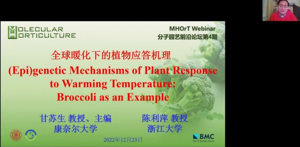 2022年12月23日晚,由Molecular Horticulture主办的第四期分子园艺前沿论坛以线上形式举行。160余名来自园艺学研究领域院校的师生与科技工作者通过腾讯会议参与,近20人观看线上直播。
