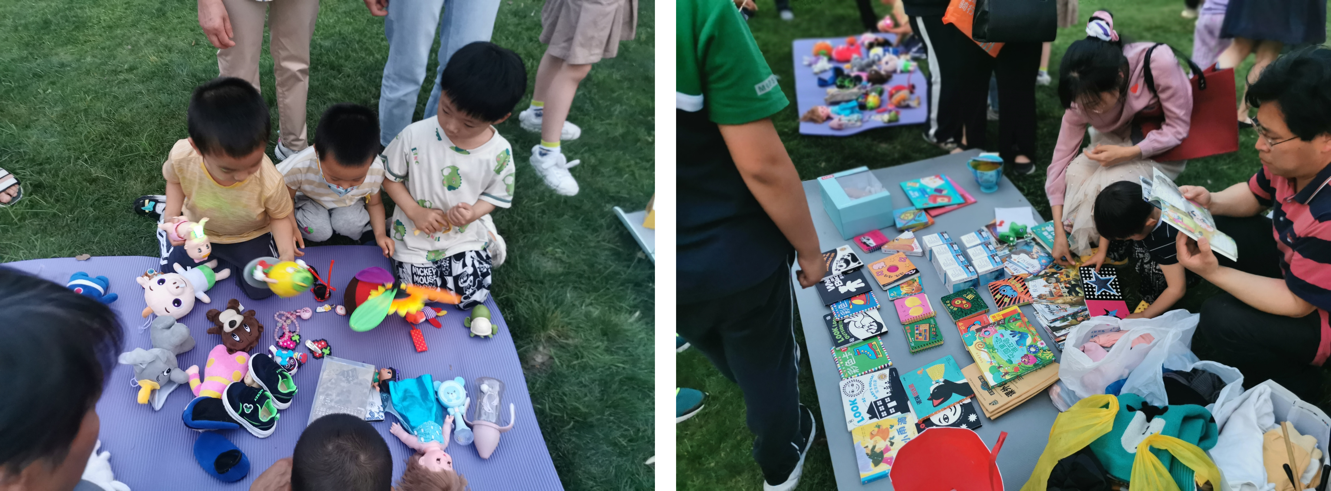 活动6点半开始,6点刚过就有孩子带着分享的玩具、书和衣物迫不及待的来报到了。舍得,舍得,有舍才有得。现场小朋友挑选的礼物都是小朋友各自义捐来的。小朋友们在懂得分享的同时,收获了双份的快乐。义捐活动还收到了“交小苗“捐赠的衣物三百余件,孩子们的爱心将传递孤儿院的孩子们。