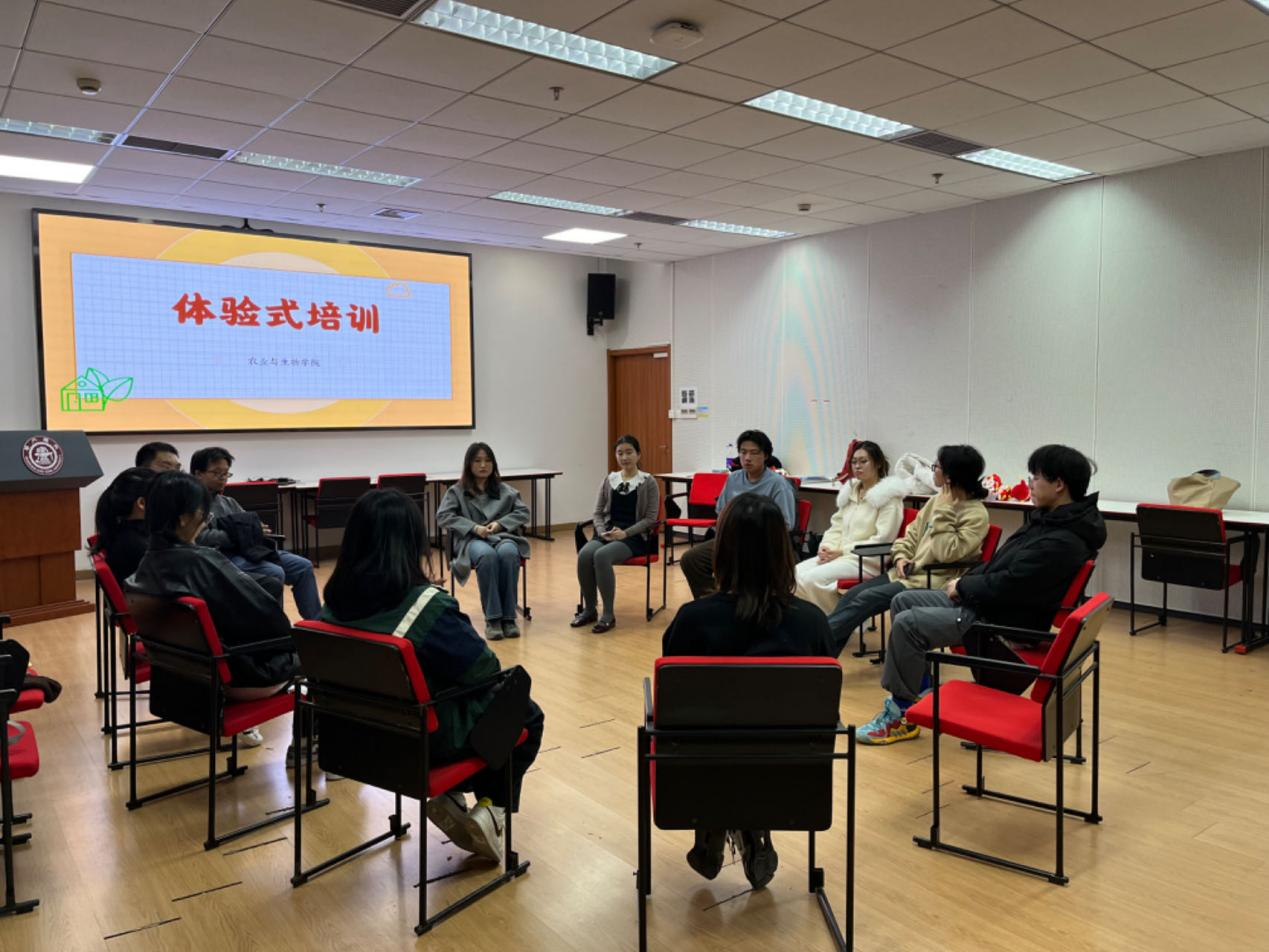 会议的上半场结束后,国际农业与生态学院的30位新生于B104会议室参与破冰活动,同学们在老师的带领下积极参与丰富有趣的游戏环节。通过这段体验式培训,同学们之间更加熟悉,并在最后的感想环节中纷纷表达了彼此之间的认可和团队合作的重要性。