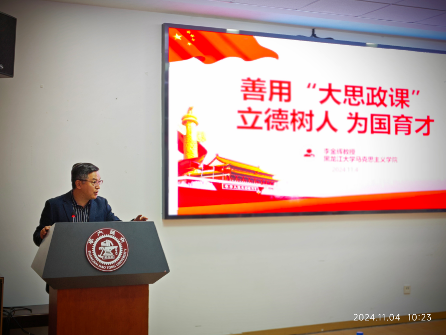 2024年11月4日上午,304am永利集团官网在B104举办了主题为《善用“大思政课”立德树人 为国育才》的专题讲座。本次讲座旨在向我院一线教师深入阐述大思政课的本质特征、重要性及其在教学实践中的贯彻方法,探讨新时代中国式现代化背景下,如何把课程思政融入专业课程教学及人才培养全过程。李新红副院长对本次报告嘉宾及与会教师表示了热烈的欢迎和衷心的感谢。