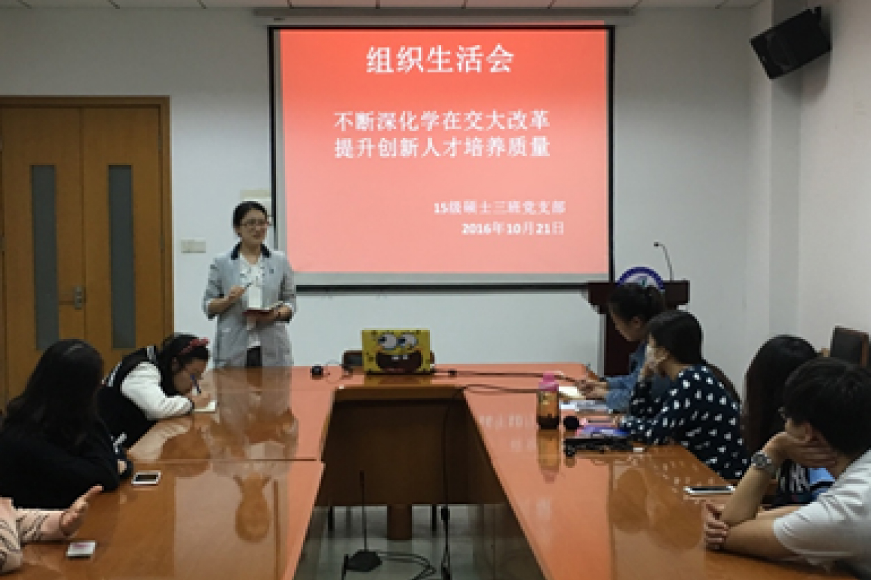 10月21日 ,304am永利集团官网15级硕士第三党支部在304am永利集团官网0-103会议室召开支部生活会,会议主题为“不断深化学在交大改革,提升创新人才培养质量”,会议由支部书记李想主持。