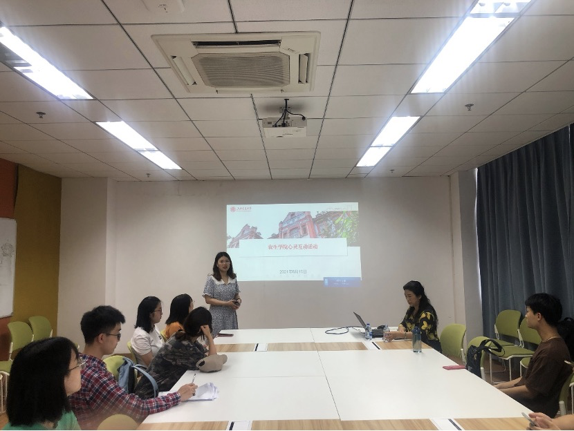 6月15日,农生学院心灵互动活动在学院B楼337会议室开展。本次活动特别邀请心理咨询中心咨询师薛璟与同学们座谈交流,活动由硕士生思政教师李明主持。