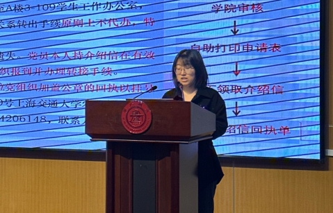 吕俊瑶老师介绍了毕业生党组织和团组织关系转出的相关流程及注意事项。她提醒同学们注意时间节点,把握好身边可以利用的资源。