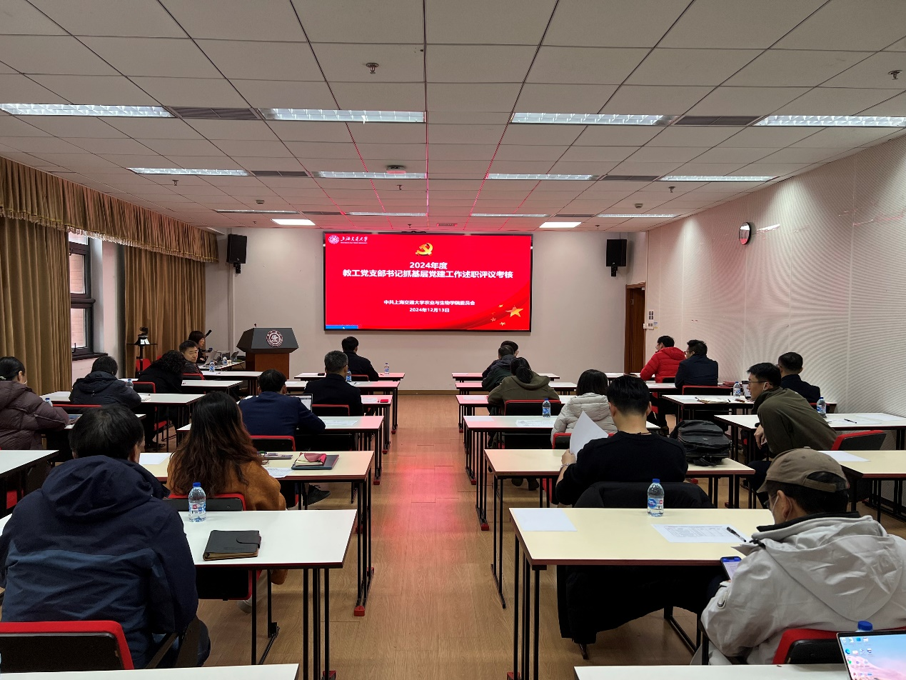 12月13日下午,农生学院党委在B104会议室召开2024年度教工党支部书记抓基层党建工作述职评议考核会,学院党委委员、领导班子、系主任、教工支部书记和支委、管理支撑部门负责人参会。会议由院党委副书记陈菡主持。