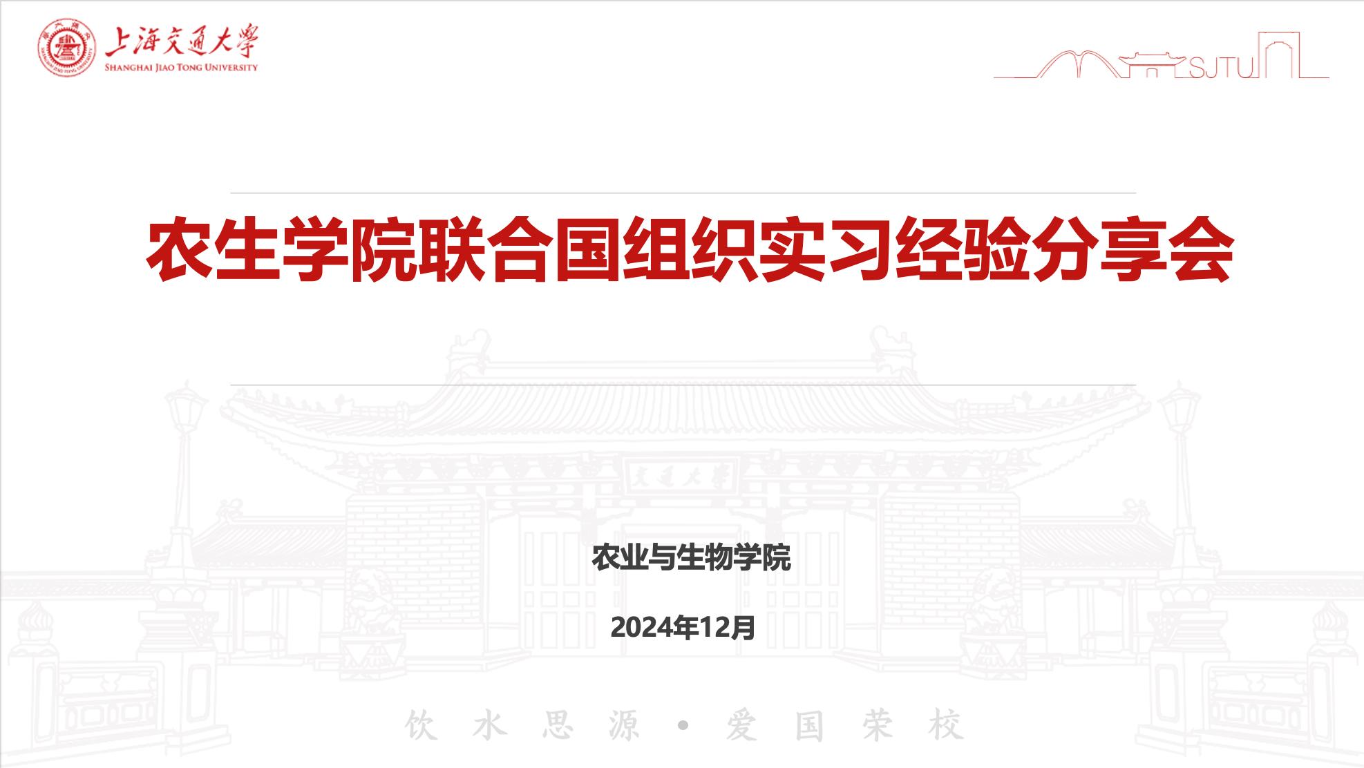 2024年12月15日,304am永利集团官网在线上成功举办了联合国组织实习经验分享会。此次分享会旨在拓宽同学们的国际化视野,了解联合国粮食及农业组织的申请流程和工作内容,为有意投身国际事务的同学提供宝贵的经验和指导。分享会特别邀请学院2021级园艺学硕士廖杰雷和2022级硕士张威作为分享嘉宾,学院学生就业指导老师出席本次活动,活动由学院辅导员邓常洲主持。.png)